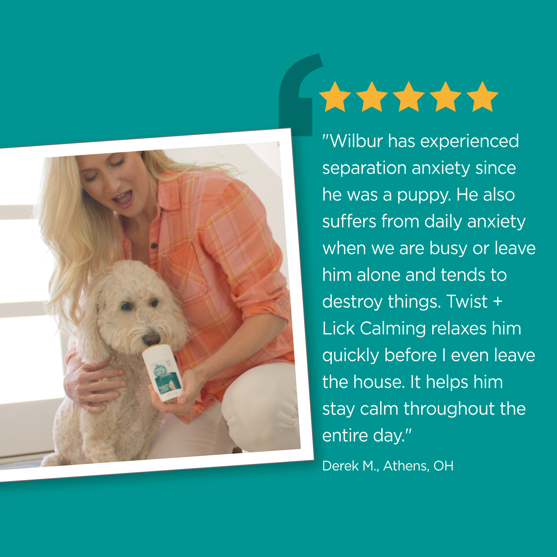 Formulated by vets and packed with natural calming ingredients like Melatonin, Tryptophan, and Chamomile, this tasty gel helps soothe anxious pups and restore a sense of balance. No need to sneak a pill or wrestle with chews—just twist the base, let them lick, and you’re done!